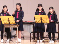 | 音楽クラブ1曲目はトーンチャイムにて「エンターティナー」、2曲目は「魔女の宅急便」より「めぐる季節」の合奏を披露しました。 |