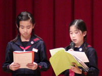 | 児童会による閉会の言葉では、来年度からクラブが始まる3年生へのメッセージが述べられました。 |