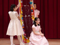 | 演劇クラブの演目は「白雪姫」。誰もが知っているお話だけに、イメージ通りの演技をするのが大きな課題となりました。 |