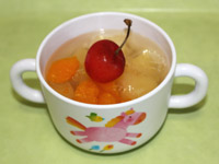 食後のデザートは自分で作ったフルーツゼリーを食べました。