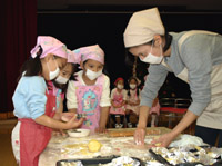 | 紙芝居でクッキーの作り方のイメージをふくらませてきました。おさらいをして、いよいよスタート。 |