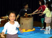 年中組さんは来年に備え、二人一組で杵を持っておもちつきをしました。