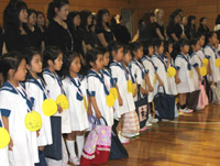 | 2年生のお姉さんとごあいさつをして始まりました。呼び込みの元気の良さに、楽しい気分が高まります。 |