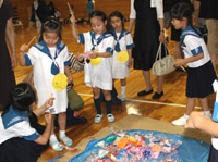 | ゲームも賞品も全て2年生の手づくりです。ルールを教えてもらい、積極的に遊ぶ姿が見られました。 |