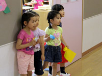 | 年中組のお友だちが、「お姉さんたちは、何をしているのかしら。」と見ていました。 |