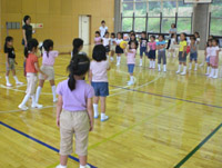 | 台風の影響による雨で、山荘探検や体育館での活動となりました。広い施設を有効に利用することができました。 |