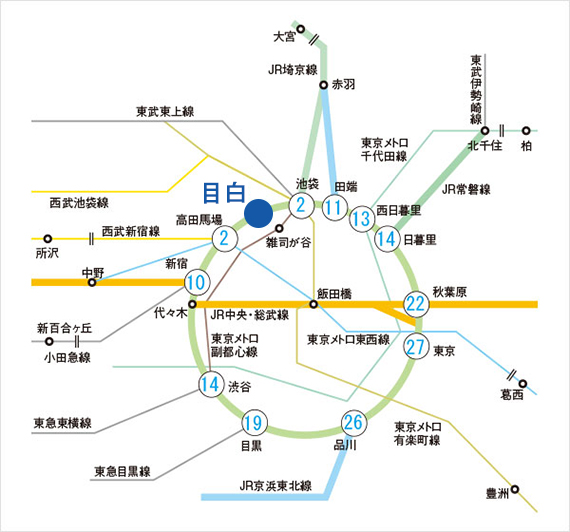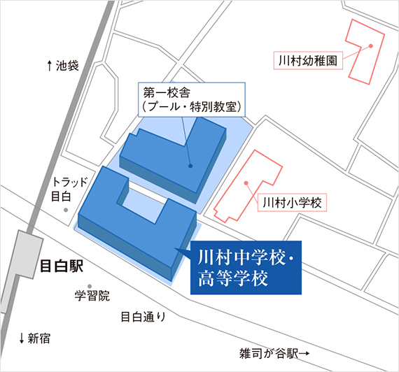 アクセスマップ TOP 学校案内 アクセスマップ JR山手線「目白」駅下車、徒歩1分という交通至便な都心に立地しながらも、静かで落ち着いた環境です。 東京メトロ副都心線「雑司が谷」駅からも、徒歩7分です。