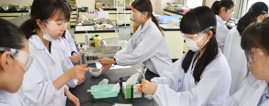 - 実験を中心に授業を進め、科学の基礎を学びます。実験操作を通し、様々な実験器具の安全で正しい使い方についても学んでいきます。