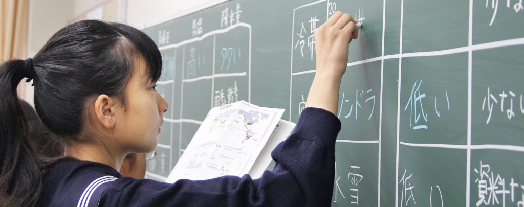- 教科書・ノートのみならず、プリントや電子黒板も活用し、基礎知識の定着を図り、「確かな学力」を身につけます。