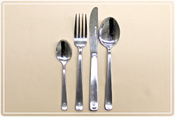 成長著しい時期に必要な栄養のバランス、エネルギー(カロリー)の充足はもちろんのこと、行事食や彩りなどにも配慮したメニューを作成しています。食を通して、日本の食文化の継承を図るとともに、食につながる様々な人たちや自然が育む命の恵みへの感謝の心を育成します。また、校章入りのカトラリーもあり、その時のメニューに応じて正しいマナーが身につけられるよう指導しています。平成26年度からは高等学校での「会食」もスタートしました。幼稚園から高等学校までの15年間を通して「食育」の充実を図り、健康な身体づくりを目指しています。