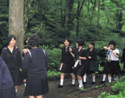 東北方面の修学旅行初日は、自然豊かな奥入瀬渓流を散策。薄暗く涼しい木々の中を、川の流れを耳にしながら歩きました。自然界の奥深さを感じ、最後は銚子大滝のしぶきに心を奪われました。