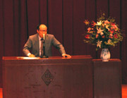 | 1・2年の蓼科総合学習で実施された写生会の校長賞受賞者と、第47回東京都高等学校吹奏楽コンクール大会B組銅賞受賞に対し、表彰式が行われました。その後副校長より、「小さなことにも真剣かつ意欲的に取り組む姿勢が大切。前期期末試験も終え、これから体育祭や学園祭など行事も目白押しとなるが、積極的な態度で臨み、悔いのない実りある秋にしていこう。」とお話がありました。 |