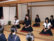 中学3年生が7月の修学旅行の事前学習の一つとして作法を学びました。靴の脱ぎ履き、正座の仕方、お辞儀の仕方、座布団の座り方などを中心に教えていただきました。簡単に見えますが、実際にやるとなかなかうまくいかない様子でした。普段から心がけているだけで美しい所作、しとやかさが身につきます。良い経験となったことでしょう。 |
