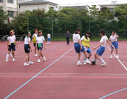 川村小学校の6年生が鶴友会クラブを体験しました。たくさんあるクラブの中からバレーボール、卓球、バドミントン、フットサル、モダンダンス、華道、料理の7つのクラブに分かれ、中高生の指導の下、楽しく活動しました。 |