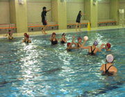 中学2年生の体育の授業では、今年度より「水球」を取り入れています。水の中で体を進めたり、ボールを投げたりするのは思った以上になかなかハード。ハンドボールと似た競技ですが、奥が深く面白いスポーツです。生徒たちも楽しくにぎやかにボールを追いかけていました。 |