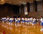 夏休みを直前に控え、生徒会主催の3年スポーツデーが行われました。クラス対抗での大縄跳び、玉入れ、ドッジボールの3種目。どの競技もクラス一丸となり、熱戦が繰り広げられました。大縄跳びはB組、玉入れはA組、ドッジボールはD組が優勝しました。 |