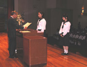 9月の講堂朝礼では、誕生者へのお祝いの後、夏休みに行われた吹奏楽コンクール、コーラス部が参加したNHK音楽コンクール、中1総合的な学習(蓼科)・中2総合的な学習(黒部)での写生コンクールの表彰式が行われました。また、教務担当の先生より、自分の脳で考えることの大切さ、わからないことをそのままで終わらせないことの積み重ねが将来自分の生き方に後悔しないこと、人生を誤らないことにつながるのだ、というお話をいただきました。 |