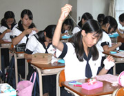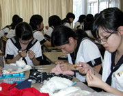 記念作業が9月9日、10日の両日に行われました。高等学校では和紙細工やテディーベア、エコバッグやコサージュなど、各クラス独自の作品を真心込めて仕上げました。 |
