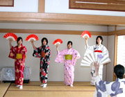 中学3年生の選択授業の1つである日本舞踊では、1学期の総まとめとして「さくら」を舞いました。浴衣も自分で手早く着ることができるようになり、全員で練習をした後、グループごとに発表をしました。前の週には鼓を実際に叩かせて頂き、日本の伝統文化を肌で感じる良い時間となりました。 |
