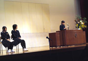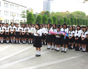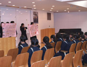10月の講堂朝礼では誕生者祝い、後期級長・委員の任命式、陸上競技大会受賞者の表彰式が行われました。その後、川村学園女子大学文学部国際英語学科の教授による「イギリスの小学校について」の講演を行いました。日本とは異なるイギリスの教育制度や異文化について、実際にお子様を通わせた体験談を交えての大変興味深いお話でした。 |