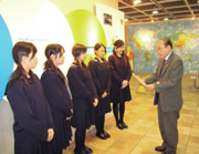 平成20年度学園祭の収益金の一部を今年も財団法人日本ユニセフ協会へ寄附させていただくこととし、中高生徒会の5名の代表と教員4名が2月18日当協会を訪問しました。寄附金は日本ユニセフ協会を通じ、世界中の恵まれない子ども達の教育や必要不可欠な保健サービスなどさまざまな救済支援活動に役立てられることとなります。 |