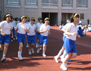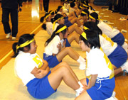 春の暖かい日差しの中、中学校の体力テストが行われました。8種目の計測を実施し、1年生はまずは自分の体力を知り、2・3年生は健康ノートに記載している新年度の記録と比較し、現在の体力を確認しました。写真の「上体起こし」では、腹筋と背筋の発達がわかり、生涯に渡り大切な筋力なので日頃から鍛えることが大切であるとアドバイスを受けました。 |