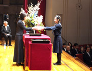電車事故の影響を受け、10分遅れで開式した入学式でしたが、皆落ち着いて臨むことができました。校長先生、副校長先生、来賓の方のお話には、川村学園で大切にしている「感謝の心」や「三羽の鶴の校章の由来」が登場しました。中学生としてのスタートにふさわしい晴れやかな入学式となりました。 |