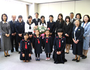 各校の代表が集まり、母の日をお祝いしました。名誉学園長先生の代わりに、中学・高等学校の寺本校長先生が中学生からのお祝いの言葉と鉢植えのカーネーションを受け取りました。「日曜日にはご家庭でも、お母様に日頃の感謝の気持ちを伝え、母の日をお祝いしてください。」と校長先生からお話がありました。最後は記念撮影をして、母の日のお祝いをしめくくりました。 |
