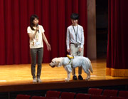 5月の講堂朝礼では、財団法人日本盲導犬協会神奈川訓練センターの方と盲導犬ユーザーの方をお招きし、盲導犬の訓練や盲導犬のいる生活についてお話をしていただきました。盲導犬のリク君が、ユーザーの方が壇上から落ちないように、体を進行方向に入れるように瞬時に動いたことに感動しました。手引きの仕方やお手伝いの声かけなど、自分にできることを実行に移すべきだと心を打つ講話となりました。 |