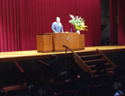 10月の講堂朝礼では目白駅の駅長より「駅構内におけるマナーについて」という演題で、エスカレーターやホームなど場所別に具体的なお話がありました。不特定多数の人がいろいろな目的を持って利用する駅でのマナーとは、人を気遣い不快にさせないよう一人ひとりが考えて行動することで、事故防止につながるものだと教えていただきました。講堂朝礼後には、震度6の地震が発生したという想定で避難訓練が行われました。 |
