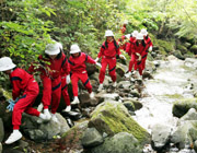 5年生の秋の蓼科学習は、理科と社会科の単元にまつわる学習に取り組みました。川の上流探検では、足元に注意しながら岩がごつごつした渓流をのぼり、流れの速さ、川のかたむき、石の大きさを学習しました。 |