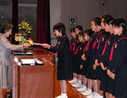 11月の誕生者をお祝いした後、学園祭プログラム表紙絵の入賞者の表彰式を行いました。小学校・中学校・高等学校から応募された52作品の中で、最優秀賞も含め10名が入賞しました。 |