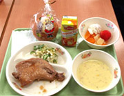 冬至会の大講堂での演目も楽しみですが、その後にみんなでいただくクリスマスメニューの会食も一層楽しい気分を演出しています。クラスによっては輪になり、にこやかな笑顔で会話が弾んでいました。「何がおいしいですか?」の質問に、「ローストチキン」、「コーンポタージュ」、「チーズ入りサラダ」とメニューがあがりました。 |