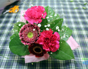 竹組はフラワーアレンジメントを体験しました。中心となる花を決め、かすみ草やレモンリーフをあしらっていきました。最後に綺麗にラッピングをして完成です。梅組の茶道では、お茶を茶筅でたてることに苦労をしましたが、美味しいお茶をお友だちにたてることができました。 |