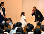 目白警察署の方による親子安全教室が開かれました。おうちでは、ご両親、学校では先生が守ってくれますが、学校の行きと帰りは自分自身で身を守らなければなりません。自分で身を守るための「3つのやくそく【いかない】【にげる】【こえをだす】」をおわまりさんのお友だちケンちゃんと一緒にお勉強しました。電車の中で知らない人に声をかけられたら「助けてください」とハッキリ言うことやエレベータに乗ったときの安全な場所などをわかりやすく教えていただきました。 |