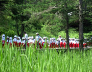 2年生は2泊3日の日程で蓼科山荘へ行きました。山荘周辺で小枝やまつぼっくりなどを集め、牛乳パックを土台にした「鳥のおうち」を作りました。引き続き、図工の時間に鳥を作り学園祭で展示する予定です。2日目は霧ケ峰高原を散策し、一日しか咲かないと言われている美しい「ニッコウキスゲ」を見ることができました。 |