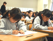 (3年生)正しい姿勢で筆を運びました。