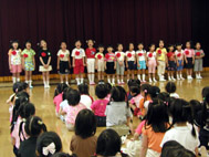 誕生者はみんなから歌とプレゼントでお祝いをしてもらいました。先生からの「大きくなったら、何になりたいですか?」という質問に、かわいらしい夢を堂々と発表できました。 |