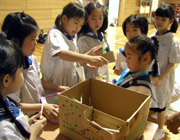 年長組が、小学校2年生の縁日あそびに参加し、時間いっぱい楽しみました。ずらりと並ぶ縁日はどれも楽しそうなゲームで、手作りの景品もバラエティーに富んでいました。 |