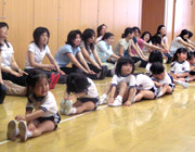 日頃から行っている体操をお母様方にも一緒に体験してもらいました。我が子の身体の柔らかさには、とてもついていけないという表情がいっぱいでした。 |