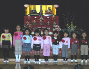 学年の最後の3月にお誕生日を迎えるお友達のお誕生会が行われました。楽しみに待っていたのがとてもよくわかるくらい、元気な大きな声でお返事ができていました。お誕生会の日はちょうどおひなまつりの日。ひなまつりの歌も上手に歌って、誕生会の後には年長組のおねえさんたちが「ももたろう」「シンデレラ」のペープサートを発表してくれました。 |