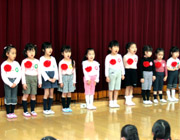 あいにくの雨天でしたが、かわいい新入園児を迎えての幼稚園入園式が晴れやかに行われました。在園児たちと一緒に楽しく歌を歌ったり、園長先生からの問いかけに元気にお返事をしたりしました。 |