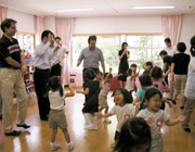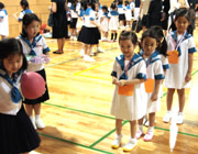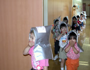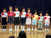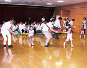 年長組の園児たちはお母さんと一緒に、小学校2年生との合同行事「縁日あそび」に参加しました。今年はゲーム屋さんがたくさんあって、お姉さんたちに遊び方を親切に教えてもらいながら、元気いっぱい楽しい時を過ごしました。 |