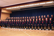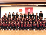 おわかれ会最後は、年長組による歌の発表となりました。「みんなおおきくなった」と「みんなあなたを愛してる」を卒園の自覚に満ちた表情で一生懸命に歌っている姿と歌声はとても立派で、会場中に感動を与えました。おわかれ会終了後には、年少・年中組さんが手作りのプレゼントを花道で渡してお見送りをしました。 |