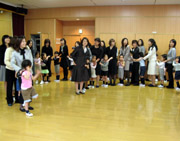 4月生まれのお友達の誕生会の様子。誕生者はみんなの前に出て、お祝いをしてもらいました。年少組は4歳、年中組は5歳、年長組は6歳になり、また一つお姉さんになる喜びをかみしめています。
