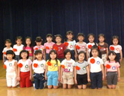 5月生まれのお友達の誕生会の様子。誕生者はみんなの前に出て、お祝いをしてもらいました。年少組は4歳、年中組は5歳、年長組は6歳になり、また一つお姉さんになる喜びをかみしめています。