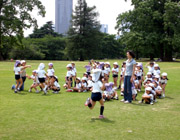 幼稚園の園外保育を緑豊かな新宿御苑で行いました。年少組は初めての園外保育、そして団体行動でしたが、芝生広場での集団遊びや青空の下でのお弁当を満喫しました。
