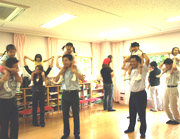 年長組の土曜参観では、まず始めに園庭で友達と元気に遊ぶ様子をご覧いただきました。手話を交えた歌の発表は、一生懸命練習した成果を発揮する姿がとても感動的でした。親子でのレクリエーションやダンスを楽しみ心地良い汗をかいた後、コースターのプレゼントがありました。子ども達のいろいろな様子をご覧いただき、親子で触れあい、充実した時間を過ごしました。