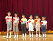 6月生まれのお誕生会の様子。誕生者はみんなの前に出て、お祝いをしてもらいました。年少組は4歳、年中組は5歳、年長組は6歳になり、また一つお姉さんになる喜びをかみしめています。 |