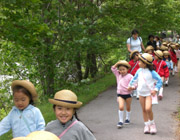 年長組の2泊3日の修養会が、蓼科山荘で行われました。お家の方と離れいつもと違う生活に最初は心細くなる子もいましたが、次第にお友達との生活にも慣れ笑顔で過ごすことができました。心地よい風が吹く女神湖の散策や、夕涼み会に花火。帰路では、5月に行ったさつまいもの苗付けの経過を観察しようと川越の農園をたずね、ぐんぐん大きく伸びたさつまいもの苗に再会しました。 |